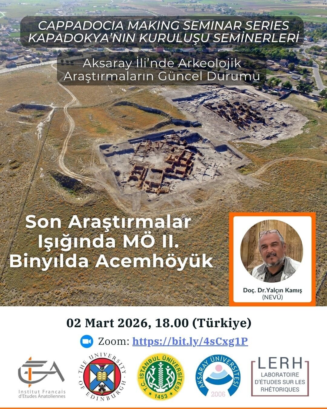 Cappadocia Making seminerleri bu yarıyılda yeniden başlamaktadır. Bu dönemin teması “Aksaray İli’nde Arkeolojik Araştırmaların Güncel Durumu” olacaktır. Seminerler bu yıl Anaïs Lamesa (Edinburgh Üniversitesi / IFEA), Metin Kaya (İstanbul Üniversitesi), F. Işıl Demirtaş (Aksaray Üniversitesi), Grégoire Sommer (LEHR / IFEA) ve İdil Üçbaşaran (Kapadokya Üniversitesi) tarafından düzenlenmektedir.
