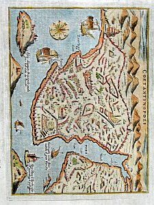 Plan de Constantinople de Porcacchi en 1572. « ISTANBUL, CONSTANTINOPLE » du livre the L’Isole Piv Famose Del Mondo. Edition de 1620, 30cm x 20cm.