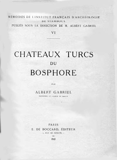 gabriel chateaux No. 6 Albert Gabriel, Châteaux turcs du Bosphore, 1943, 125 p. + 32 p. pl. (cote COLL I M 06)